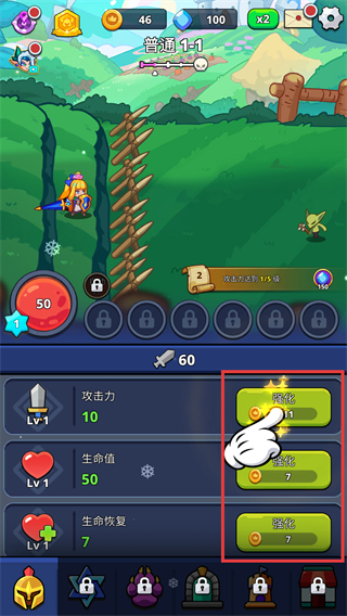 4、战斗后可点击强化按钮,消耗金币强化攻击力、生命值、生命恢复等属性,提升怪物战力,同时参与每日挑战与赛季排名,收集稀有怪物碎片,增强队伍实力。