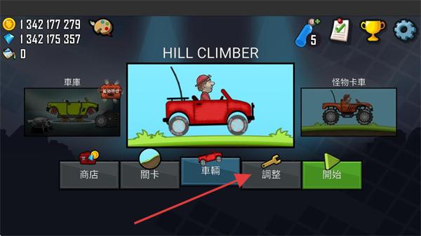 1、点击车辆按钮,进入车辆升级界面,可对车辆部件进行升级,提升车辆爬坡性能。