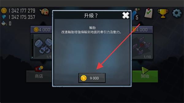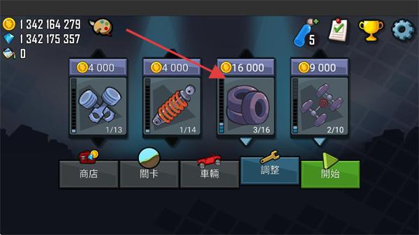 3、升级轮胎时,消耗对应的金币,升级后轮胎性能提升,助力车辆在复杂地形中行驶。