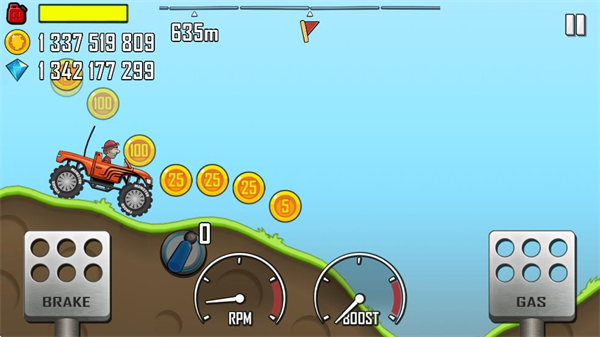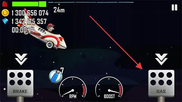 4、驾驶升级后的车辆时,点击右侧油门按键控制前进,利用升级后的性能平稳爬坡。