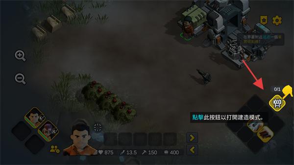 2、点击建造模式按钮,进入建造界面,可在末日场景中建设各类建筑,通过建造获取资源,助力角色生存与基地发展。