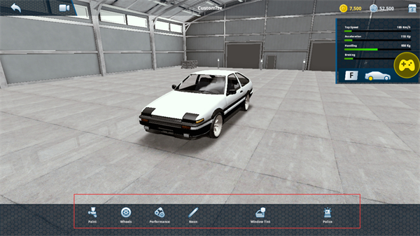 1、进入自定义界面,可调整paint、Wheels、Performance等多项设置,打造专属个性化赛车,从外观到性能全方位定制,满足不同竞速需求。