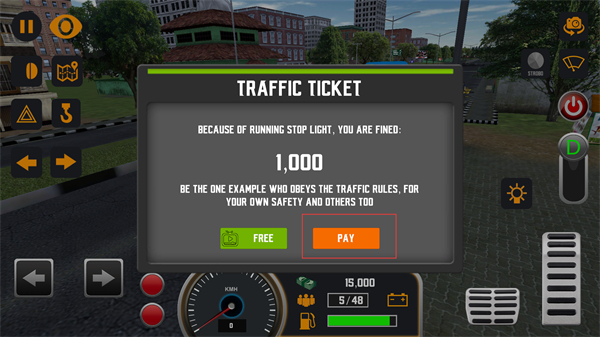 1、若违反交通规则如闯红灯会收到罚单,需选择FREE或PAY处理,遵守交通规则可避免罚款,保障驾驶安全与收益。