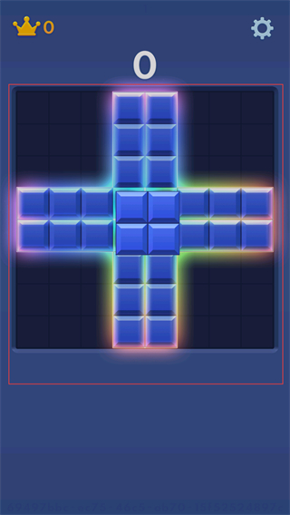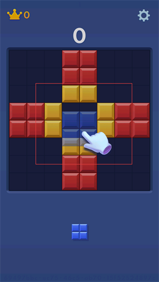 1、将下方的蓝色方块拖入棋盘对应区域,填补空缺位置,为后续的行列填充消除做准备。