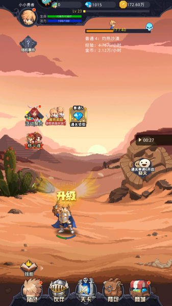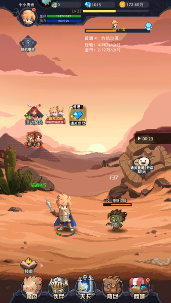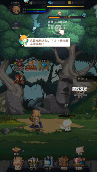 2、核心放置挂机机制,离线自动推图打怪,上线一键领取经验、金币,实现“睡觉也能变强”。