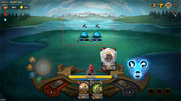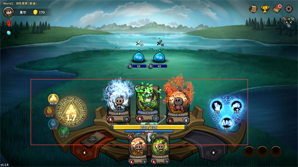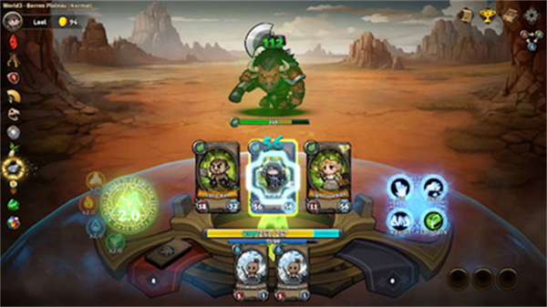 3、选择不同元素属性的英雄卡牌出战,借助它们的独特技能搭配组合,触发对应的战斗效果来推进对战节奏。