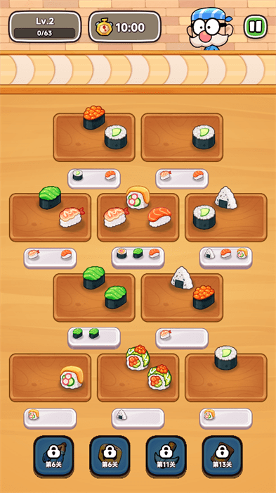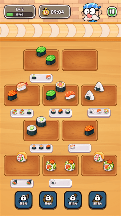 3、关卡设计多样,含消除指定寿司、限时配送等任务,难度随进程逐步提升。