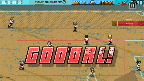 4、当足球射入对方球门后,赛场会显示GOODAL字样,同时己方队伍的得分会对应增加并记录赛事进度。