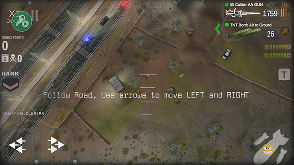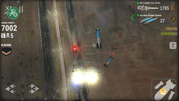 1、操作简洁直观,虚拟按键控制飞行与投弹,快速上手无复杂流程。
