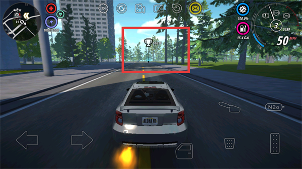 2、朝着道路上的奖杯标识方向驾驶车辆,车辆会持续向目标靠近,同时保持当前行驶速度推进进程。