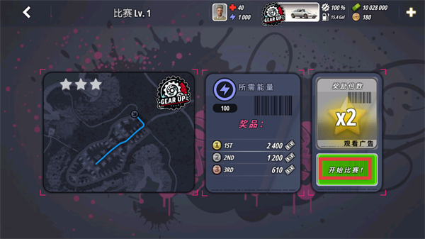 3、点击开始比赛按钮,进入对应赛事的赛道场景,同时界面加载出比赛相关的规则与进度显示。
