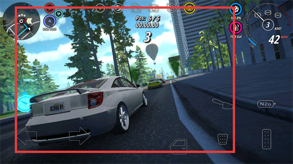 4、操控方向按钮调整车辆行驶轨迹,超越前方的其他赛车,界面会同步显示当前的比赛排名变化。
