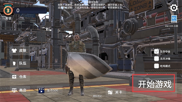 1、选择生存夺金模式,点击开始游戏按钮,进入游戏的战场场景开启任务。