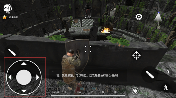 2、操控左侧方向键移动角色,靠近场景中的队友,与对方交流确认本次任务内容。