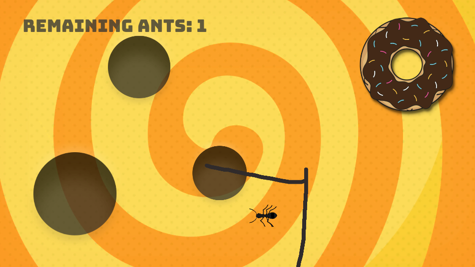 3、画面中需通关划线,阻挡蚂蚁吃到甜甜圈,引导蚂蚁进入黑洞里。