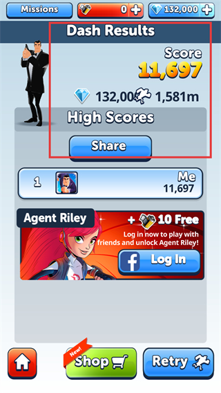 4、点击Share按钮分享本次跑酷的得分结果,同步自己的成绩数据,还能解锁对应的互动奖励。