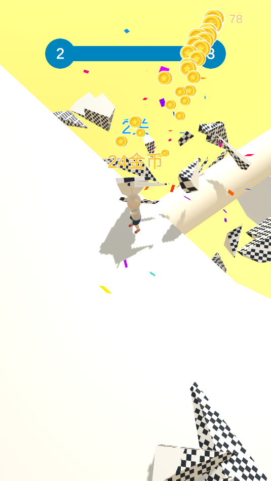 3、角色撞击最后几道墙体,到达终点线即可通关。