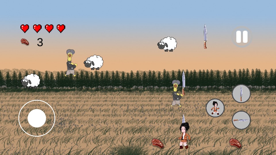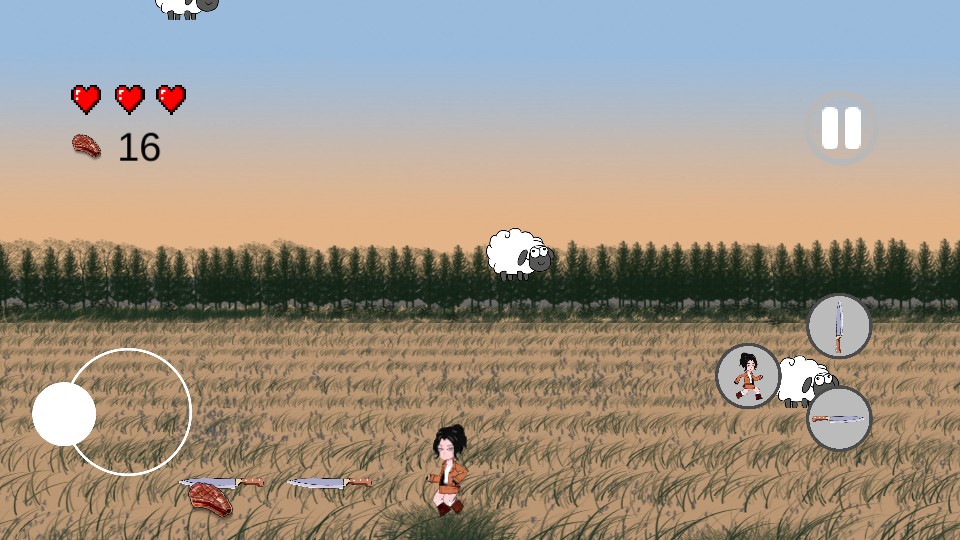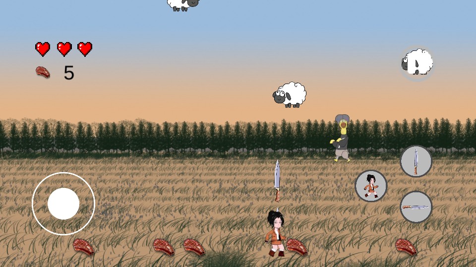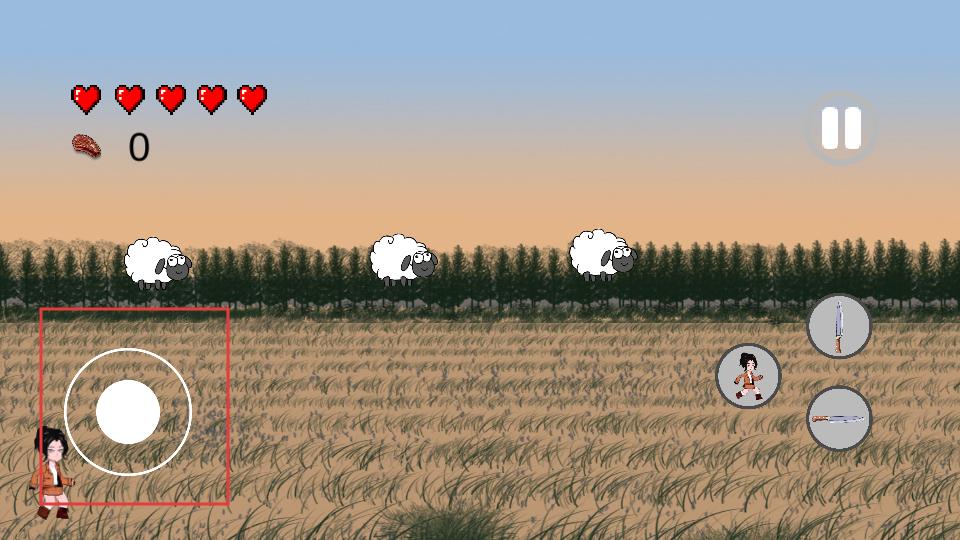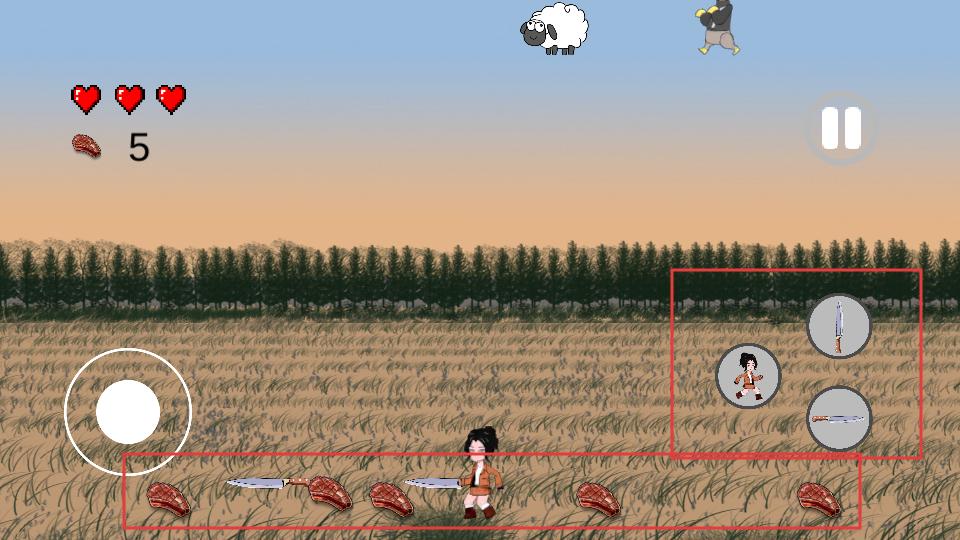 2、在游戏中通过左侧的操控按钮,控制角色移动,去接近出现的羊,为后续切割做准备。
