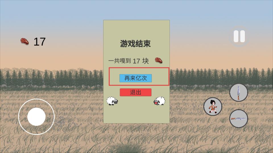 4、游戏结束后,会显示嘎到的肉块数量,若想继续挑战,点击再来亿次按钮,就能重新开始游戏。