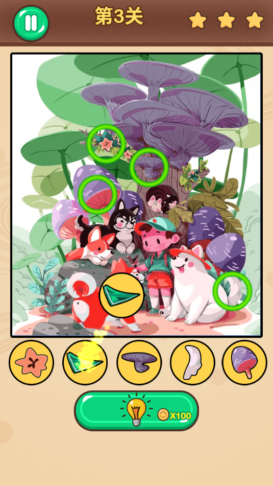 2、关卡中,找出下面所示的5种东西即可。