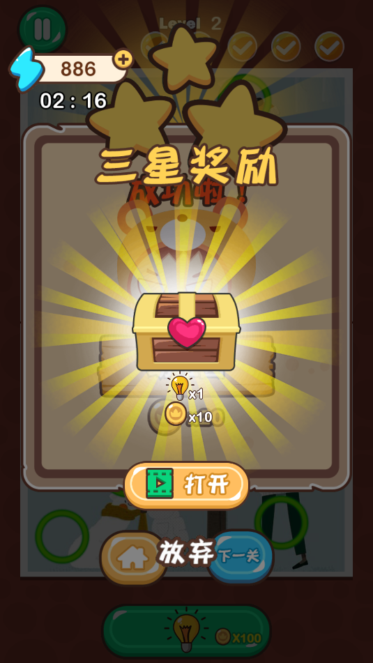 3、设有时间限制,完成速度影响评级,星级高低与后续内容解锁相关联。