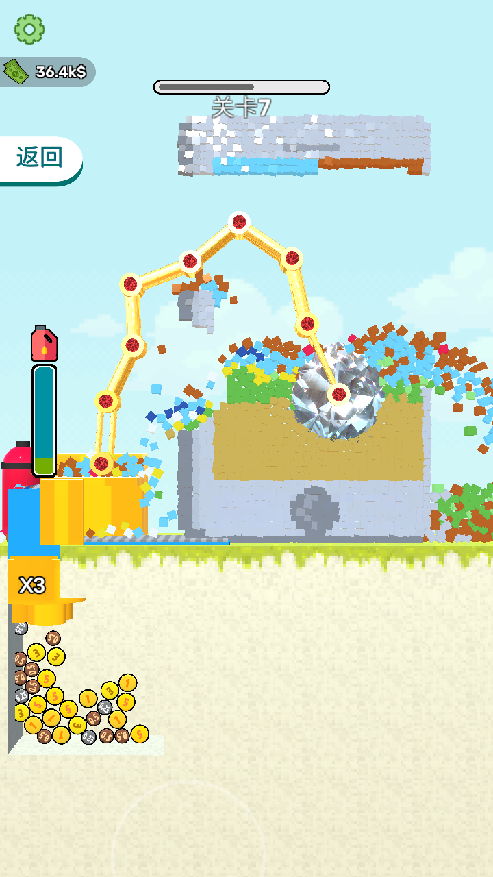 2、100+个手工设计的关卡场景,从简易砖墙到钢混结构循序渐进。隐藏挑战关卡需要特定工具组合才能解锁,激发探索欲望。