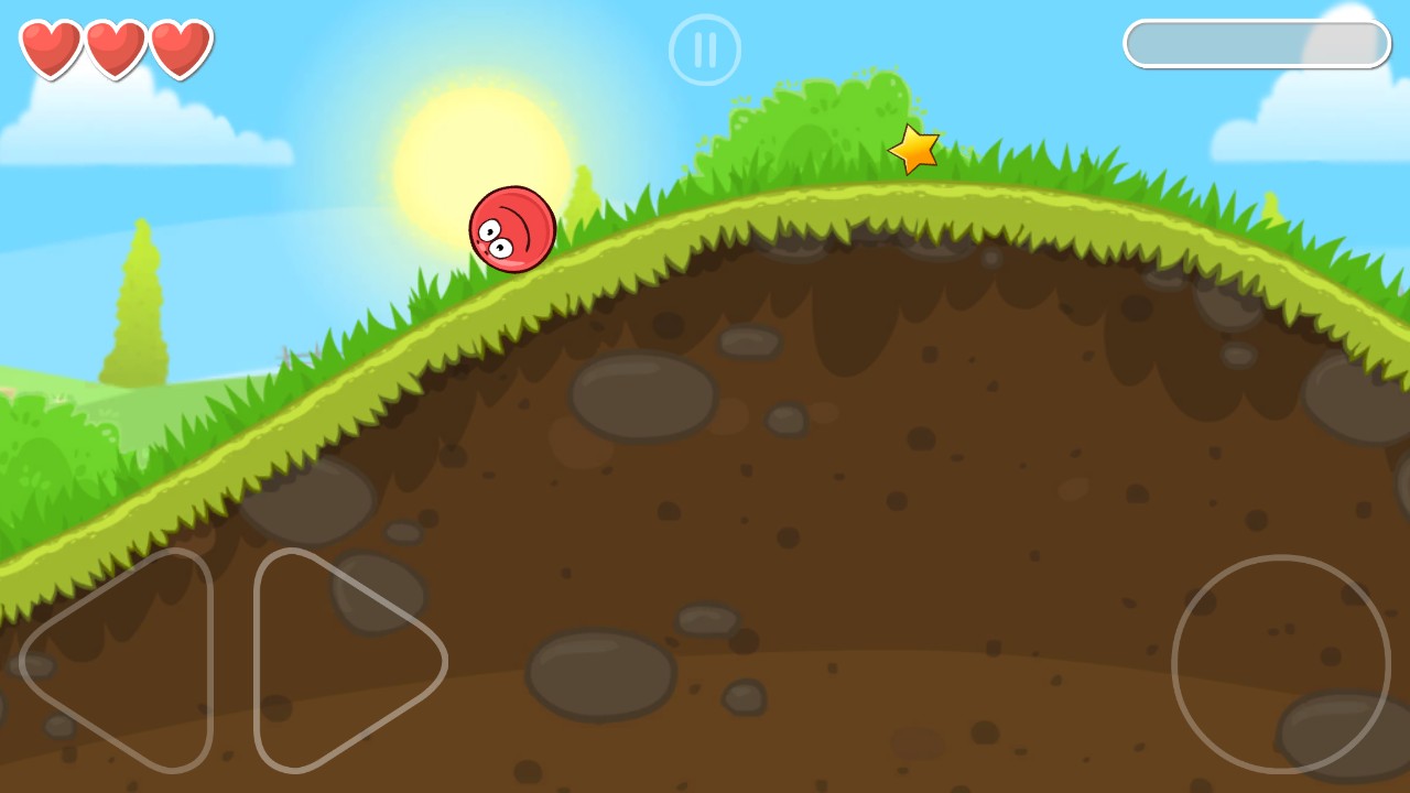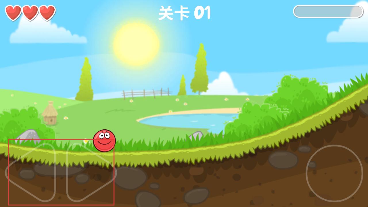 2、在关卡里通过左侧的操控按钮,控制红球移动,让它在草地等地形上前进,应对各种地形。