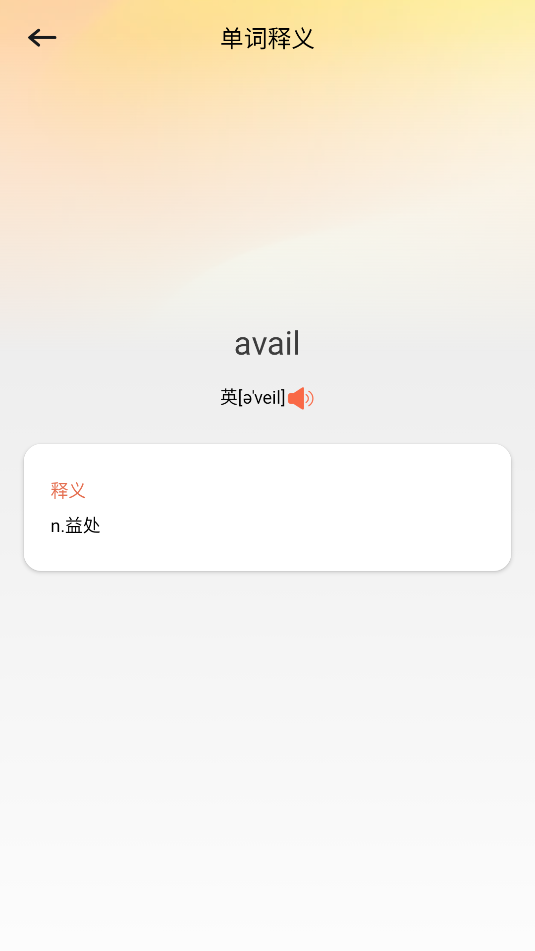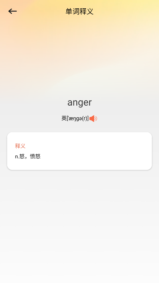 3、点击声音按钮,可以阅读英文单词,下方配有释义。