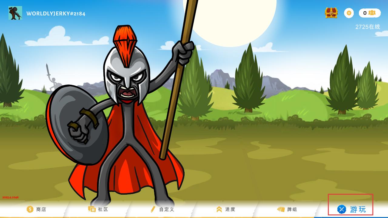 1、进入游戏界面,能看到火柴人战士形象,点击右下角游玩按钮,即可开启策略战斗之旅。