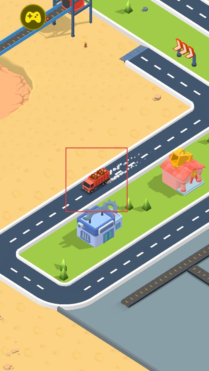 4、红色卡车装载矿石后在道路上运输,将矿产送往目的地,完成资源运输环节,推动矿产经营的后续发展。