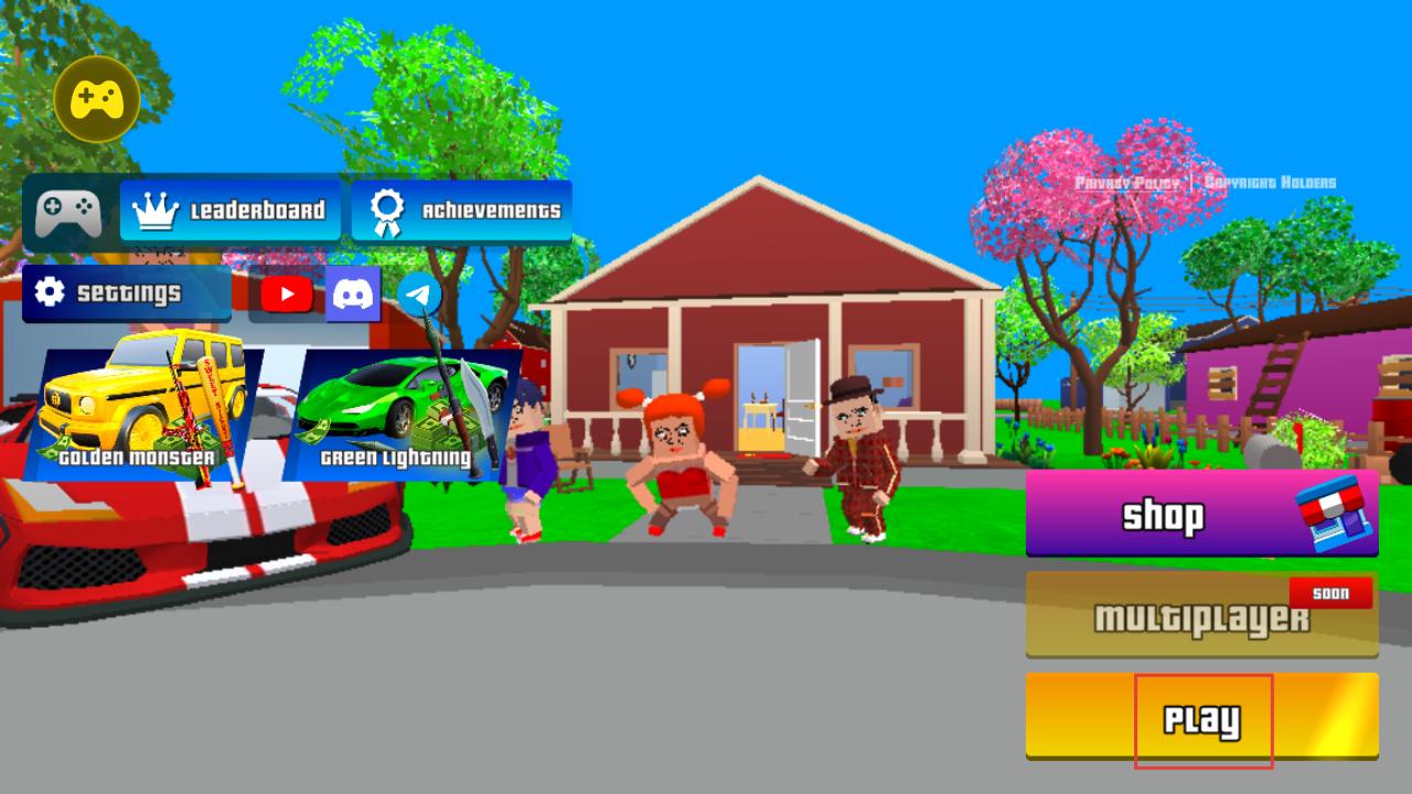 1、进入游戏可见带有车辆、角色的主界面,可点击play开启冒险,也能在shop浏览道具、在leaderboard查看排名,开启像素都市的探索之旅。