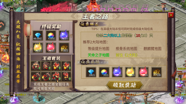 3、参与基础活动:挑战低阶副本积累资源,加入公会获取协助,开启狂暴之力提升掉宝率。