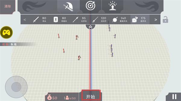 2、部署好红色兵种后,点击开始按钮,让红蓝队伍展开交锋,开启趣味十足的模拟对战,体验策略对决的乐趣。