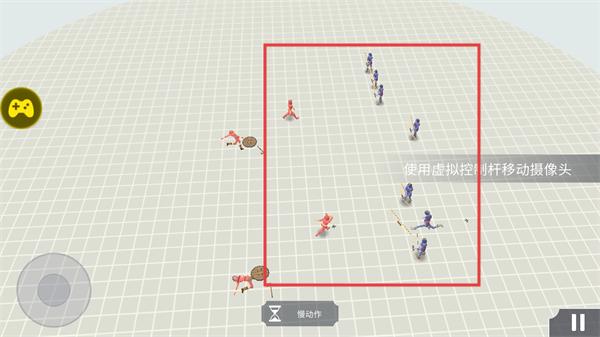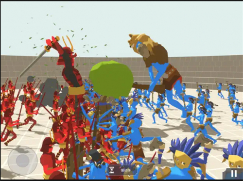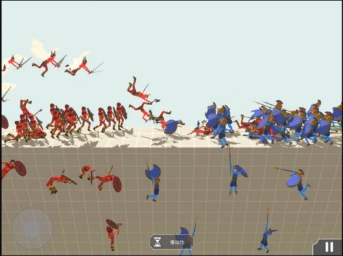 3、战斗中红蓝兵种激烈交战,使用虚拟摇杆移动摄像头,观察战局变化,感受高精度物理引擎带来的逼真战斗效果。