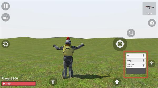 4、操控角色选择Hi、Jump、Chicken Dance等动作,让角色做出相应姿态,在沙盒世界中增添角色互动的趣味性。