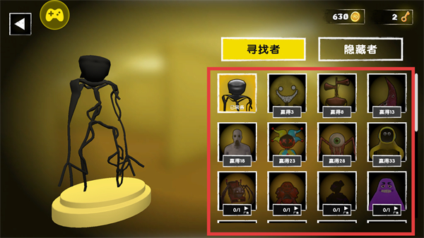 1、进入游戏可选择寻找者角色,如多种怪物形象的寻找者,挑选心仪角色后开启后室逃脱的寻找模式,开启恐怖解谜冒险。
