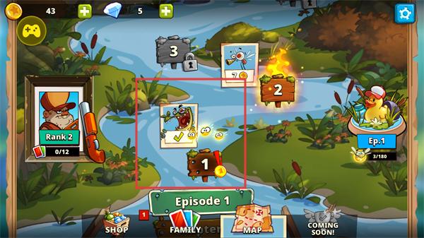 1、在关卡选择界面选择第1关,开启沼泽战斗冒险,准备抵御变异生物,开始守护家园的闯关之旅。