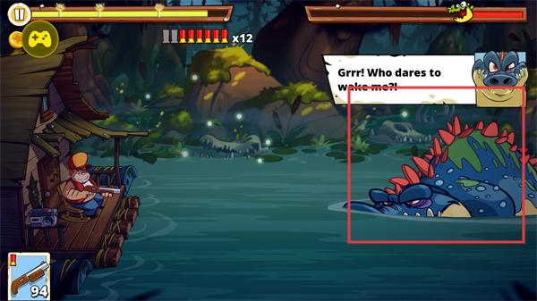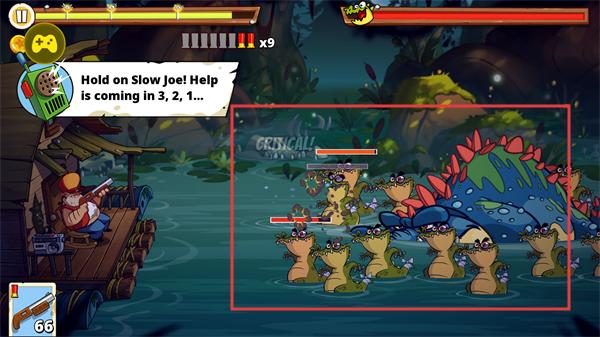 3、应对成群的鳄鱼敌人,使用枪械射击,抵御它们的进攻,在沼泽里推进战斗进程,守护自身安全。