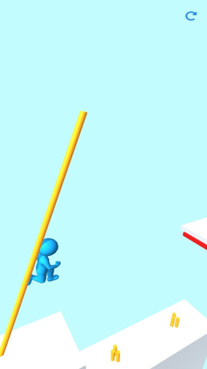 1、点击屏幕控制棍子伸缩与角度,借助撑杆原理跨越悬崖、方块等障碍,躲避圆锯等陷阱。