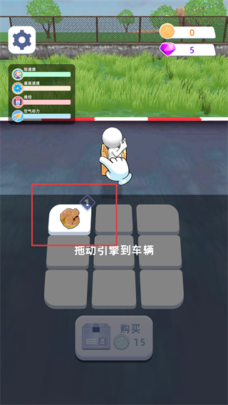3、拖动引擎零件到车辆对应的位置,完成这一零件的组装步骤,推进飞机制造进程。