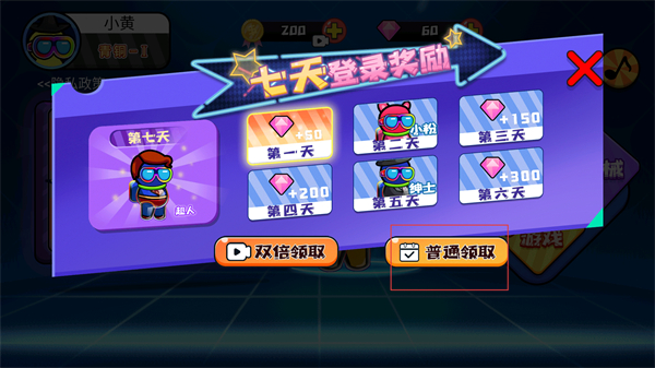 1、在七天登录奖励界面点击普通领取,获取对应的钻石和金币奖励,积累游戏内的资源。