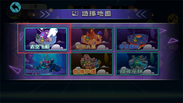 2、在选择地图界面点击太空飞船,选定该地图场景,进入对应的太空飞船对战场地。