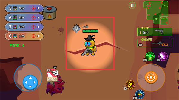3、操控角色在地图中移动,使用武器攻击其他角色,逐步减少对手数量,提升自身存活概率。