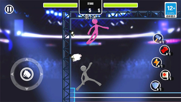 《火柴人大作战》是一款动作格斗类手游,以火柴人形象为核心,主打热血对战。采用虚拟摇杆操控,搭配攻击、技能按键,可释放连击与必杀技。包含故事、生存、排位等多种模式,故事模式推进剧情解锁角色,排位赛主打竞技对抗。战场可拾取15种以上武器,从双节棍到激光剑各具攻击方式,还能利用环境与载具辅助战斗。通过战斗获取技能点,强化角色天赋,提升战力应对更高难度挑战。
