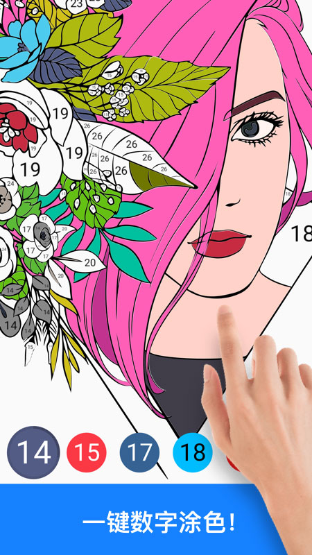 2、根据线稿上的数字提示,点击对应颜色的颜料,再点击标有该数字的区域,逐步为线稿填充色彩。