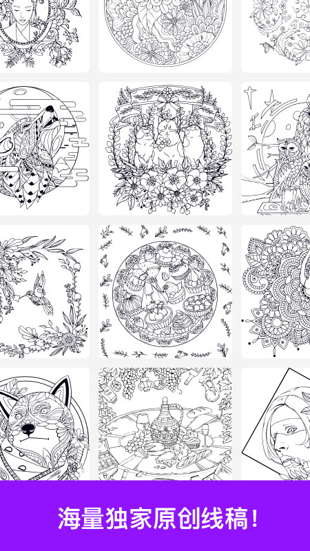 1、打开游戏后,从花卉、动物、抽象等丰富主题中,挑选一幅心仪的线稿作品,进入涂色界面熟悉数字标记规则。