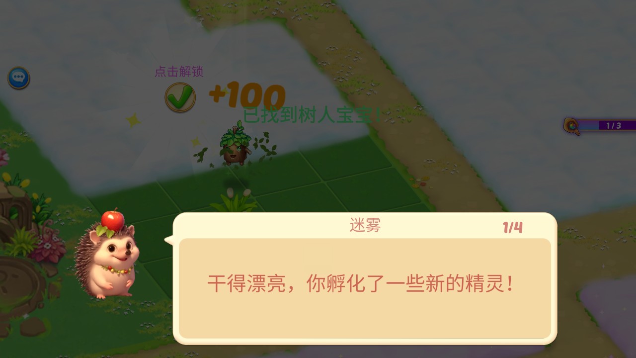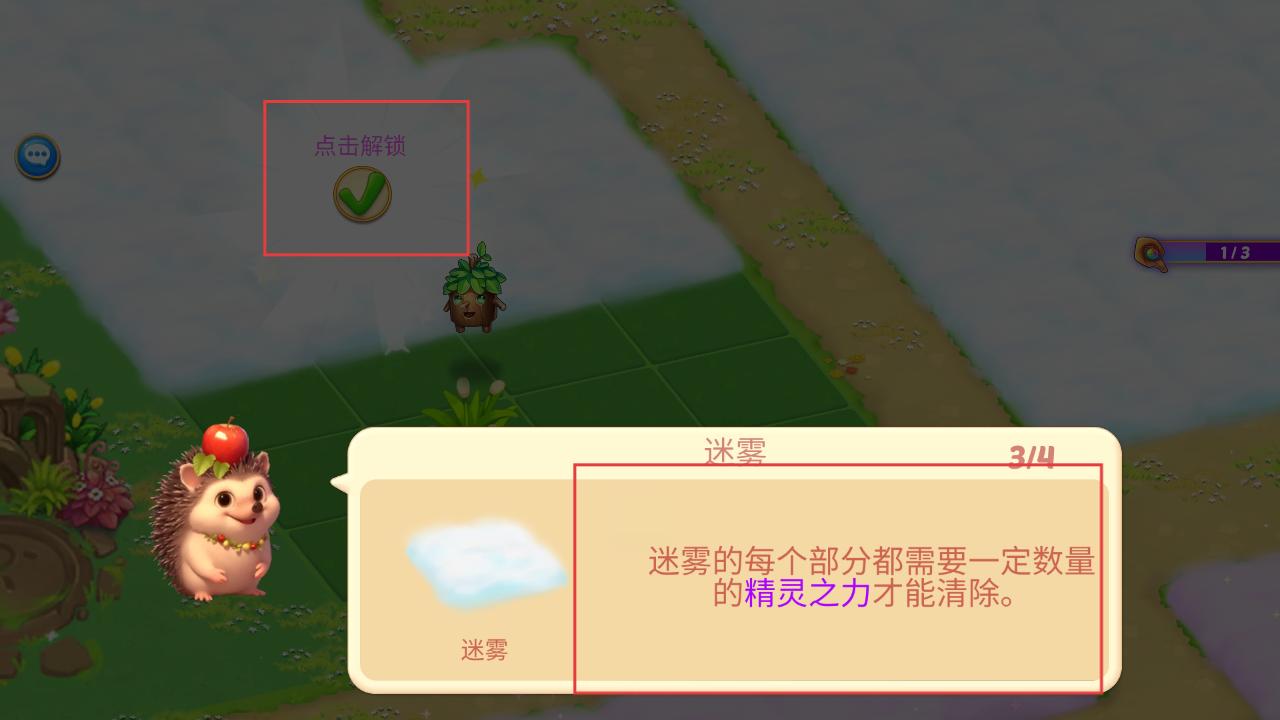 3、花园中存在迷雾,迷雾的每个部分都需要一定数量的精灵之力才能清除,点击对应区域可解锁,探索更多花园空间。