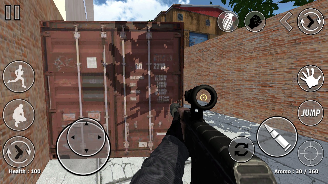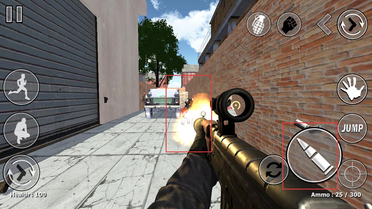 1、操控虚拟双摇杆执行精准射击与战术走位,点击特殊按钮触发近战处决动作,成功爆头可获得三倍伤害加成与额外奖励积分。