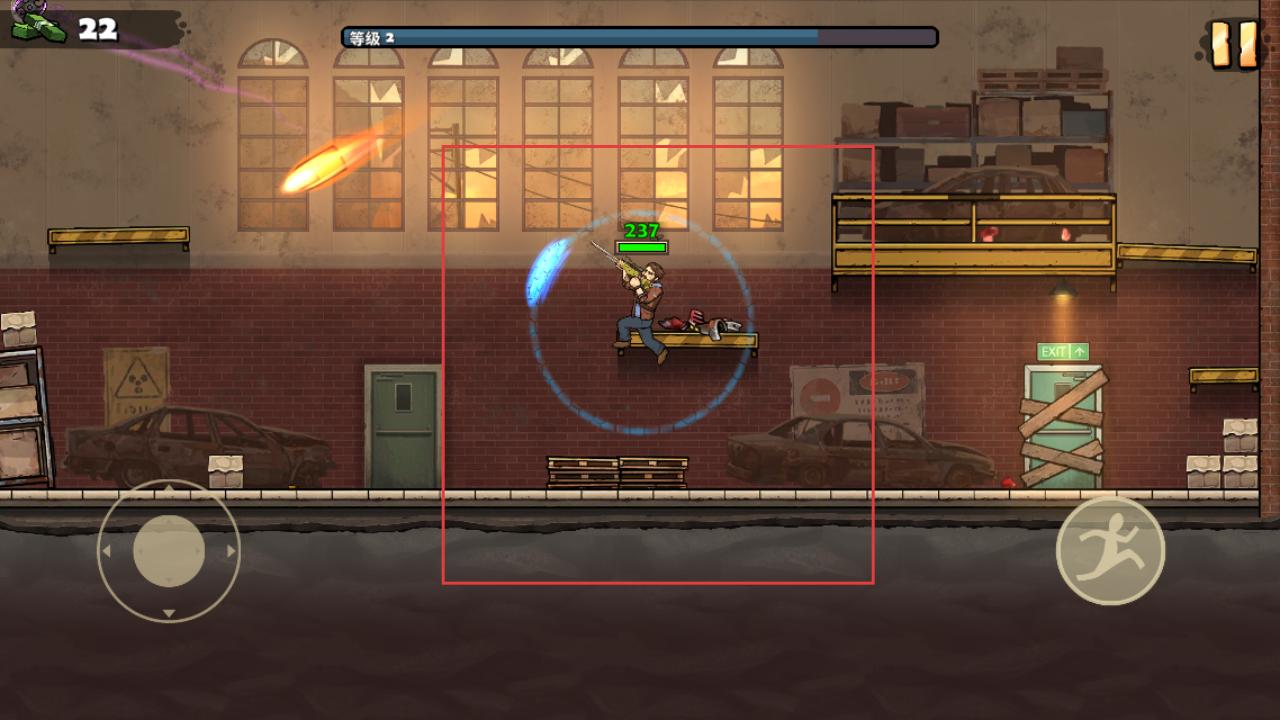 3、战斗时角色可利用武器攻击僵尸,同时借助场景中的平台等地形躲避攻击,灵活应对来自各方的僵尸威胁。
