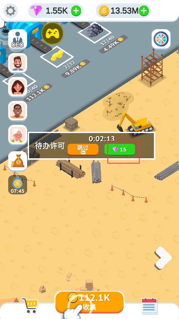 2、花费15钻石跳过待办许可时间,加快建筑进程,提升经营效率,助力矿业设施快速建成,推动经营流程的高效运转。